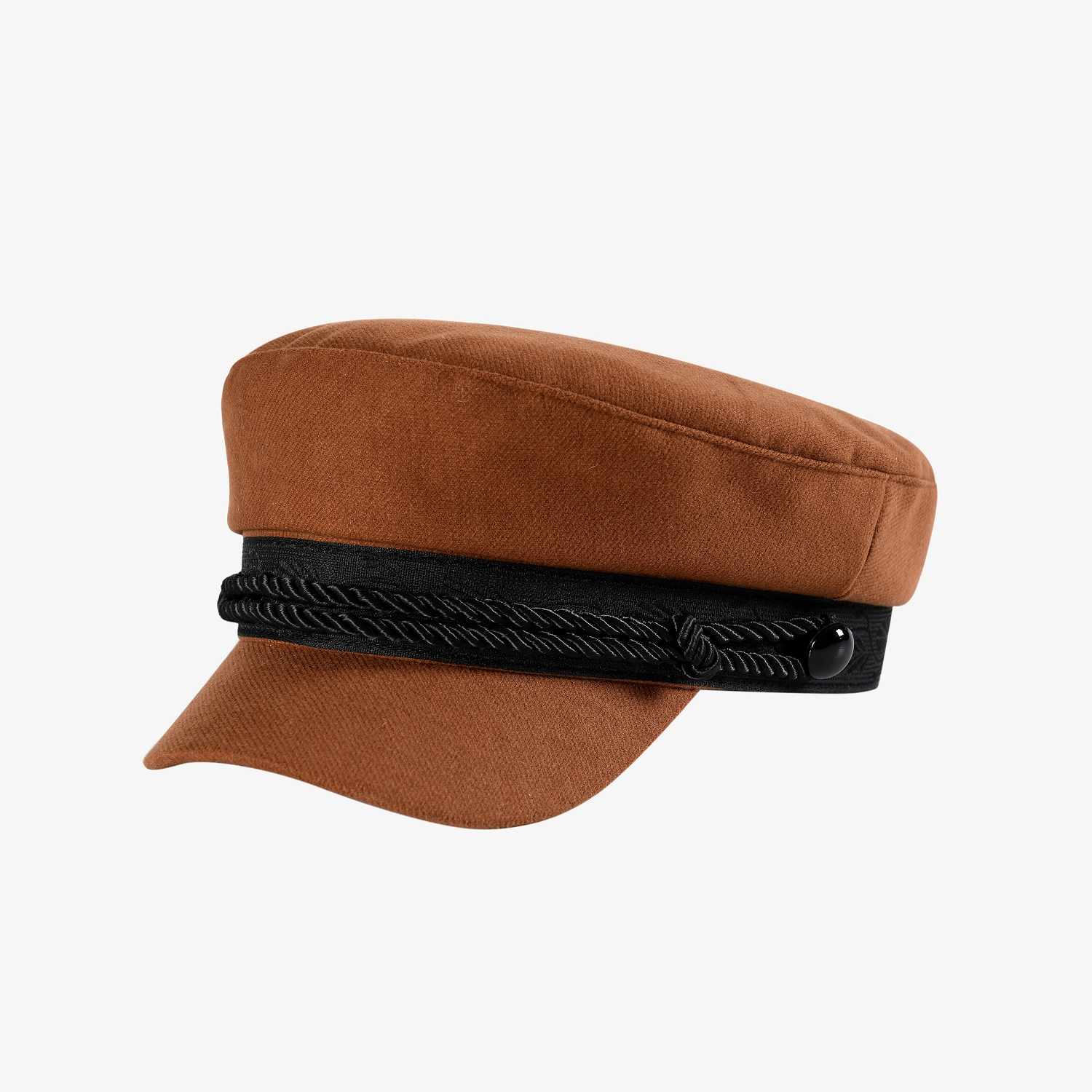 高贵呢料搭配黑色装饰带定制的军帽造型时装帽,既显优雅,又添帅气,比起招摇的镀金装饰带,黑色装饰带更显低调内敛的格调
