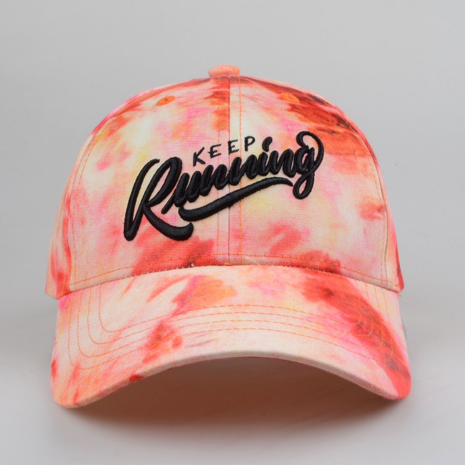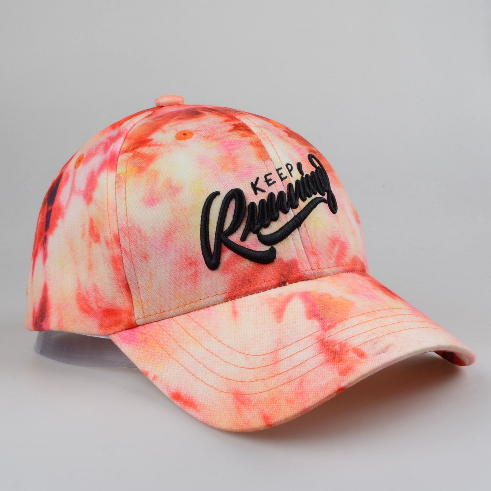 扎染系列帽子将传统扎染工艺与时尚制帽技术相结合,色彩斑斓,风格鲜明,魅力十足,此款扎染绣花棒球帽更是当季厂家主打帽款